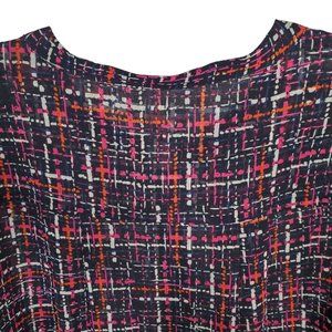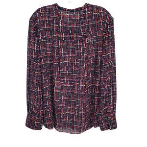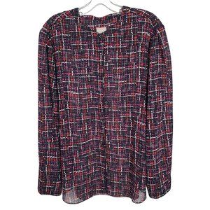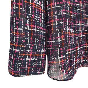 Chico's 4 Size 20/22 Blouse Chiffon Semi Sheer Tweed Print Button Up Long Sleeve