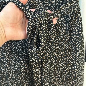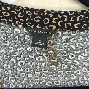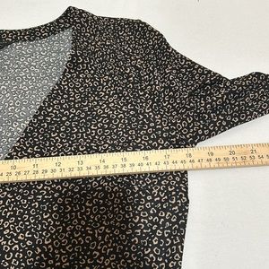 ANN TAYLOR WRAP DRESS WOMEN SIZE 6 BLACK TAN LONG SLEEVE ANIMAL PRINT