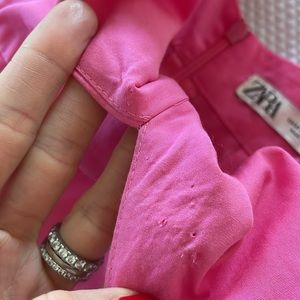 Pink midi dress worn only once to a wedding. Hits at the ankle. Plunge neckline and open back. Removable sash that can be tied in the front or back! Note that there is a small snag on the inside front from a safety pin. See photos.