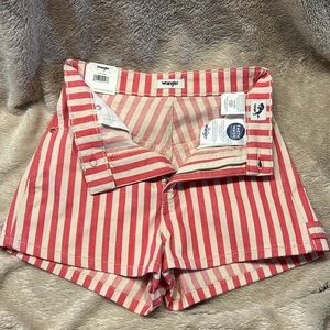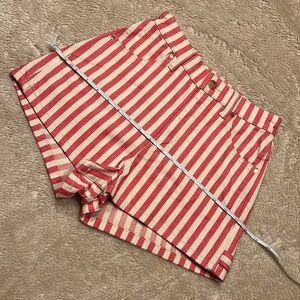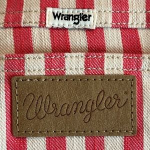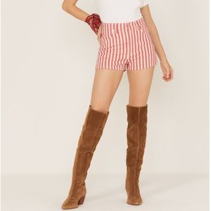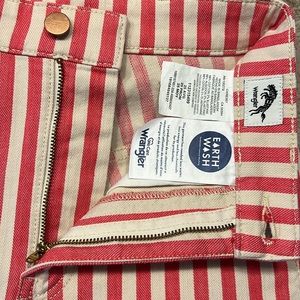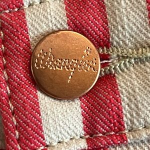 Pair these must haves with your go-to button down top or a tank top and you're good to go. High rise. 4-pocket design. Zip-fly with button closure. Hammer loop. Bronze tone button and studs. Allover railroad stripes. 100% Cotton.
