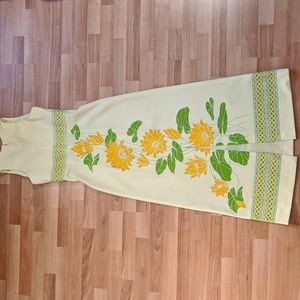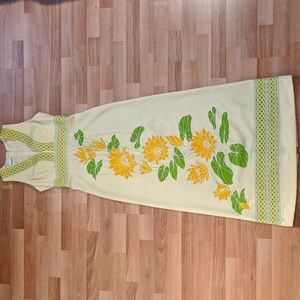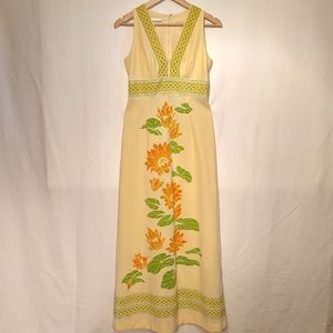 Vintage 60's-70's yellow lotus flower printed Alfred Shaheen maxi dress