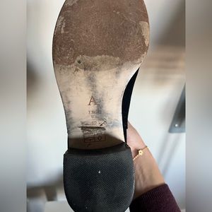 Gently used. Gold back zipper with gold studs on the back. Leather insole and wooden block heel.