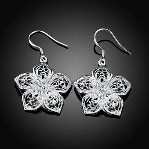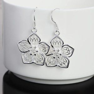 Gorgeous 3D Flower .925 Sterling Silver Hanging Earrings