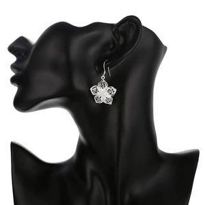 Gorgeous 3D Flower .925 Sterling Silver Hanging Earrings " Hypoallergenic "