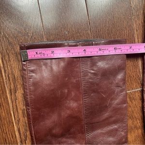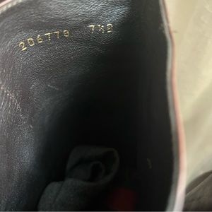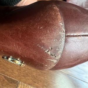 Super classic gorgeous high heel boot. Preowned and pre-loved condition. These show signs of wear, worn as a classic staple, but still have lots of life left. Bottoms look good !!They are made beautifully. These can be conditioned and cleaned . The heels have wear and knicks, and that is where most signs of wear are- the leather is super soft and scratched easily but it was part of the look . There is a little bit of staining around toes . See photos. Gucci logo on one heel . Slip on style - no zipper - see measurements, regular to narrow fit in calves. A great, classic boot for a great price.