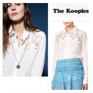 Intricate broderie anglaise lends a luxe, romantic look to this crisp white shirt from The Kooples.