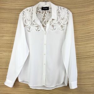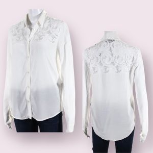 The Kooples Broderie Anglaise Button Down Shirt In White/Off White Size L