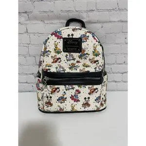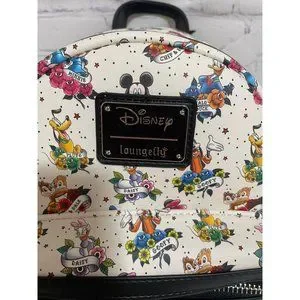 Loungefly Disney Mickey And Friends Tattoo Mini Backpack White Black Bag NEW