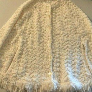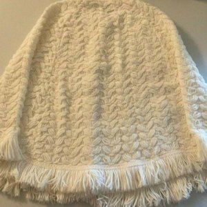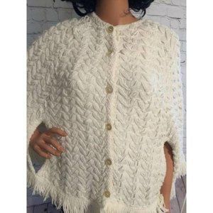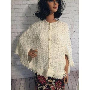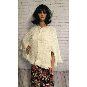 Vintage 1960s Aris Knitwear Ivory Crochet Shawl Fringe Boho Wrap