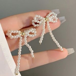 Luxe Faux Pearl Romantic Bow Earrings