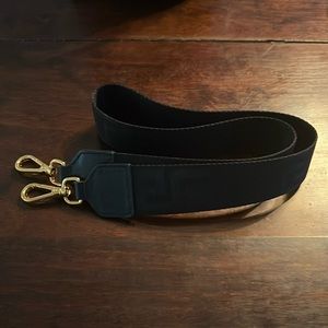 Can be carried by gold-tone chain or worn with the black crossbody strap.