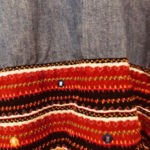 Embroidery on the bottom of the jacket and in front.