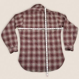 Vintage Pendleton Wool Red Gray Plaid Button Down Shirt Country Traditionals Size Medium. Has minor holes and repairs.