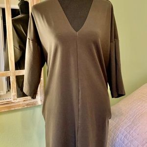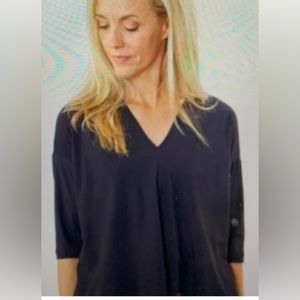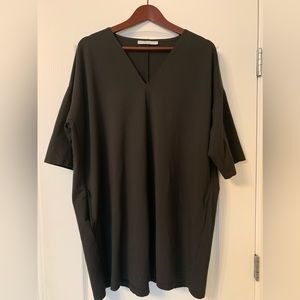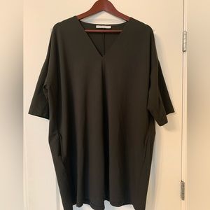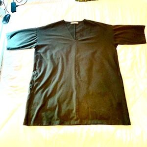 Bryn Walker black V-neck oversized long tunic top pockets Large Lagenlook L-XL