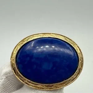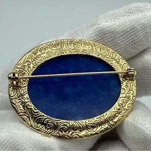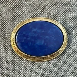 Vintage Blue Emitation Marble and Clasical gold Tone Brooch #766
