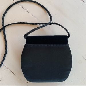 Vintage 80s Elegant Black Velvet and Satin Shoulder Micro Bag