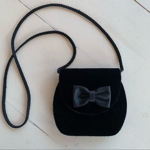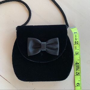Elegant Black Velvet and Satin Micro Bag with snap closure and gusset bottom.  Front flap has satin bow embellishment.  Quite the sweet accessory.  In lightly used condition.