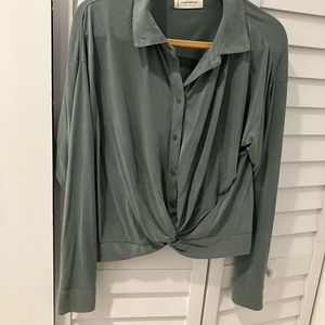Lucky Brand top great condition. Gathers at bottom, button down. Light olive green stylish top feels comfortable and looks great dressed up or down.
