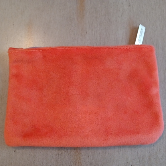 * Pink & orange furry colorblock bag w/yellow Hooray zipper pull.
