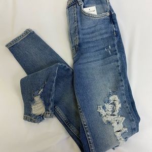 Free People NWT We The Free Women's 24 Light Wash Blue Skinny Leg Jeans Distressed