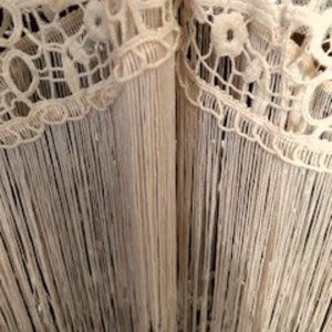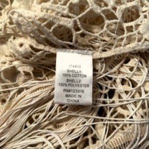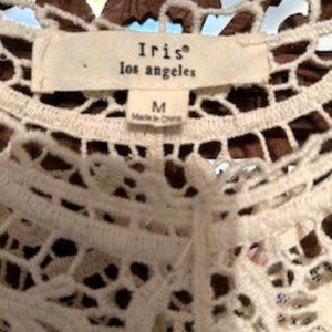 Iris Los Angeles Crochet Tassel Sheer Blouse, size M. Ivory lace with crochet cap sleeves. Party/Casual/Coverup. Cotton/Polyester. Machine Wash Cold. Preowned.