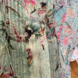 Hemant & Nandita Missima Top sz S Blue Metallic Threads