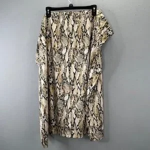New with tags Susan Graver snakeskin printed faux suede skirt in cream and black. Elastic waist, back slit, pull on style, midi length. Size 5X.