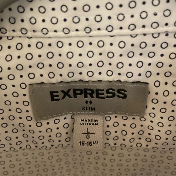 * Express Slim Fit L 1MX dress shirt with navy dot pattern.