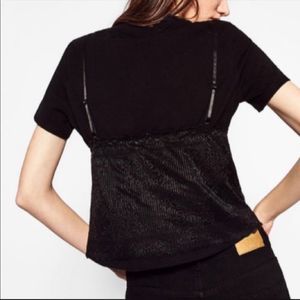 ZARA Black Short Tee w Lace Overlay Tank Top