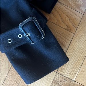 BCBG MAX AZRIA, Fitted Black (Small), Flutter/Ruffle Pea Coat. Buckles at wrists, puffed shoulders, cinched at waist. Super cute.