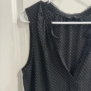 Elevate your professional attire with this chic and playful Banana Republic Sleeveless Buttoned Blouse. Its classic polka dot pattern brings a timeless charm to any ensemble.
