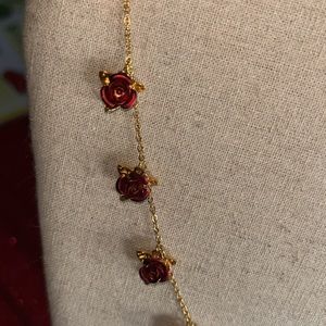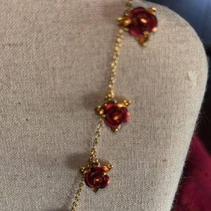 No call outs. All costume jewelry, not sure of brand but on the tags. 12 red roses on a “gold” change working clasp.