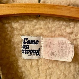 Rad vintage shearling/denim vest. Perfect for layering. Great condition with a true vintage patina. Come On Strong brand, Union made in the USA. Awesome details. Tagged sized XL men’s, perfect oversized fit.