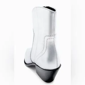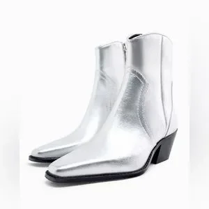 NWT. Zara Metallic Silver Cowboy-Style Leather Ankle Boots. Size 8, 9.