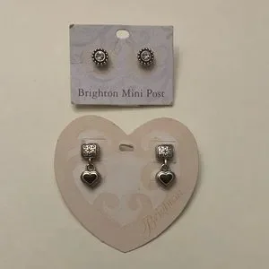 NWT Brighton silver/black LENIKS heart post earrings and mini post earrings lot.
