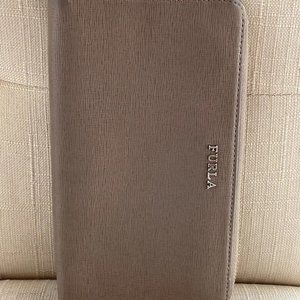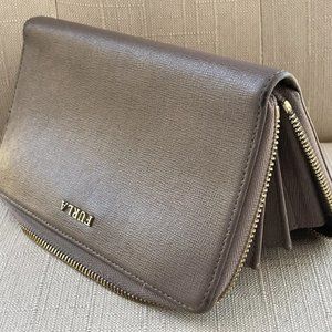 Furla Women Wristlet Genuine Leather Brown Wallet Card Holder Purse