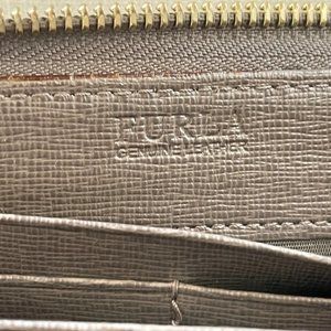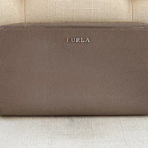 Furla Women Wristlet Genuine Leather Beige Wallet Card Holder Purse