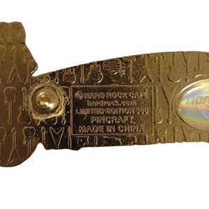 This 2007 Hard Rock Cafe Niagara Falls, NY, Limo Pin is sure to be a hit in any collection.  Gold-tone Limousine figure with a bride wearing pink and a man wearing a black Tuxedo.  The limousine is marked 2007 NIAGARA FALLS, NY with a Hard Rock Cafe logo in front of the newlyweds.  The back is marked ©HARD ROCK CAFE LIMITED EDITION PINCRAFT MADE IN CHINA.   The double butterfly clutch pin back helps keep the pin straight placed and offers more secure placement. Butterfly clutches can be more easily removed and are better for use when the lapel pin is regularly moved.
