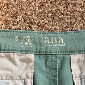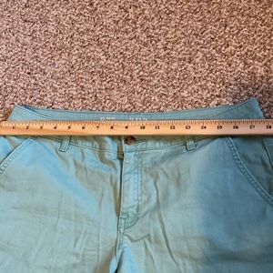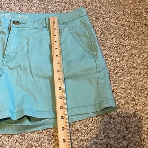 These are the perfect summer shorts! Dress up or down. The color is a light mintish blue color. Super cute! Only wore once or twice.
