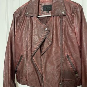 Blu Pepper Deep Red Faux Leather Moto Jacket