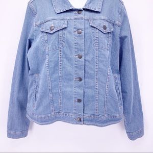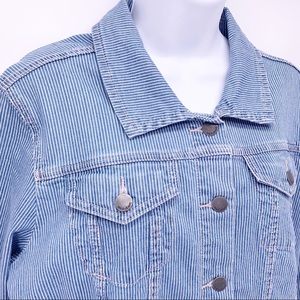 Super cute casual pinstriped jean jacket that can be worn with so many different outfits.