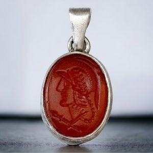 Greek Soldier Pendant Hand Carved Red Agate Sterling Silver 925