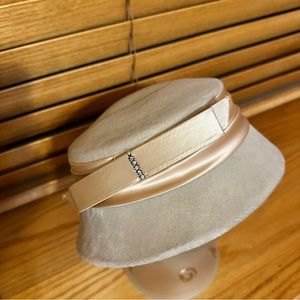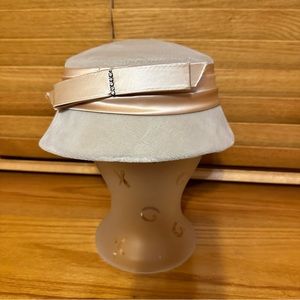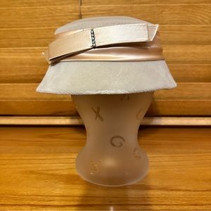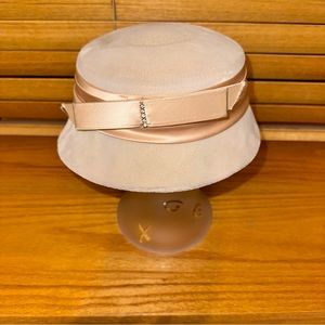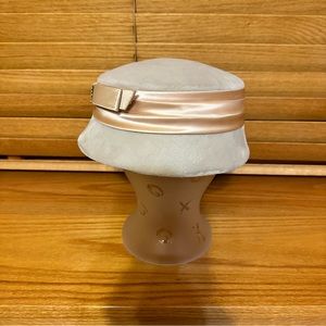 Vintage in excellent condition velour hat with satin ribbon around. 20” circumference. Very original, pretty, and good quality. No inner labels.