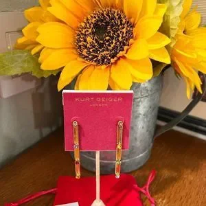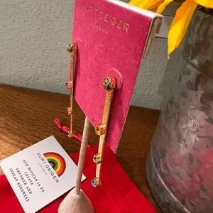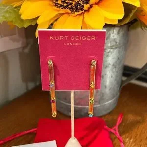 NWT Kurt Geiger London Signature Mismatched Stone Snake Linear Earrings #TSER