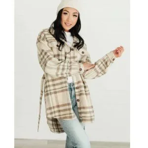 Oat Benji Belted Plaid Jacket/Cardigan Large XL