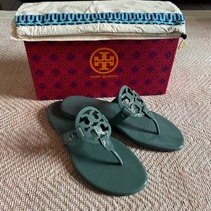 NEW Tory Burch Miller Sandals- Sz. 8- Softy Naplack Cow Patent New Arctic