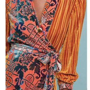 Anthropologie Velvet Patchwork Wrap Top by Moulinette Soeurs