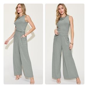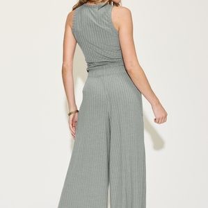 Gray Ribbed Tank and Wide Leg Pants Set