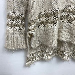 Free People XS Linus Stripe Pullover Sweater Eyelash Loose Knit V-Neck Oversized