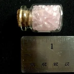 Tiny jar of pink quartz stones rocks cute crystals cork bottle